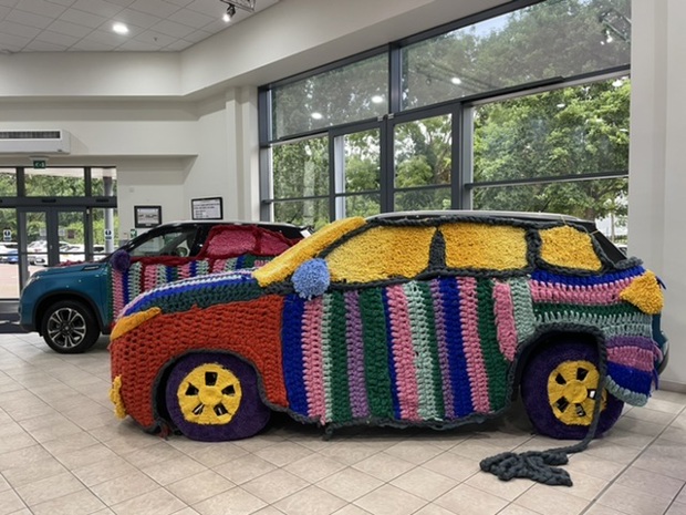 It’s no ordinary handover as Suzuki’s reception area pays homage to the car maker’s new TV advert and brand positioning, known as “Good different”. The quirky TV advert features two ‘grandmas’ knitting giant cardigans to “create the warm fuzzy feeling” that comes with Suzuki’s cars.