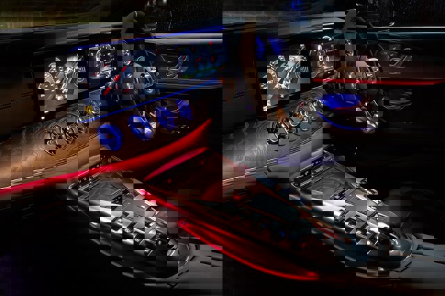 The interior uses the same panoramic design as the E-Class, with a wide windscreen and sweeping dashboard that's dominated by a pair of 12.3-inch HD screens. The digital instrument binnacle can be configured with different themes – classic, sport and supersport – allowing the driver to add details on torque, traction, engine data and g-force. Superport mode also features an F1-style gearshift light indicator for track driving.