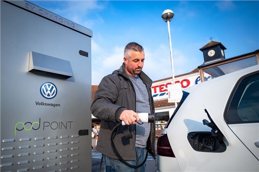 The charging bays, launched in partnership with Volkswagen and installed by Pod Point, will be based in Tesco Extra and Superstore car parks across the UK. Customers will be able to charge their electric cars or plug-in hybrids using a standard 7kW charger free of charge, or use a rapid 50 kW charger for a fee.