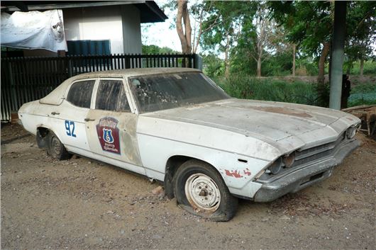It's in Lam Luk Ka North of Suvarnabhumi airport. I think the street was Soi Wat Adison, beside a builder's yard, definitely left turn off highway 3312, which you can reach by heading North on Highway 9 from the airport. The owner is P-PLOY YONT; he manager is Narong Poungpong. Telephone numbers are 0-2747-0670-1; 01-1991191; 01-9275028 and 0-2747-0671. You need to make an appointment or they may/may not let you in. Good luck. Compared to the same models in the USA, the cars are mostly fairly rotted out. Two favourites were the ’63 Chevelle Royal Thai police cars.