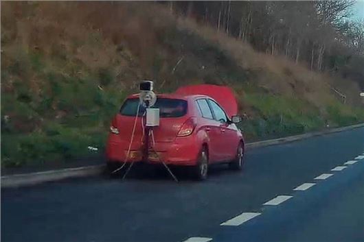 I was driving up the A40 from Monmouth to Ross on Wye the other day when I saw the red car in the picture parked in a layby with what appeared to be some sort of camera on a tripod behind it. Any idea what it was?