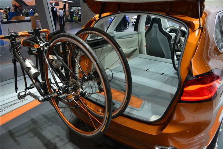 The concept boasts an integrated cycle carrier which folds away when not in use. The interior is a typical motor show flight of fancy, with a floating centre console, and a leather-trimmed luggage compartment.