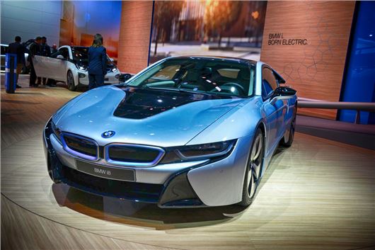 BMW has shown its exciting new plug-in hybrid i8 sports car in production form at Frankfurt. The mid-engined car boasts a a welded aluminium chassis which underpins a carbonfibre-reinforced plastic (CFRP) bodyshell. Despite its immaculate ecological qualifications, BMW claims its 0-62mph time is 4.4 seconds with a maximum speed of 155mph when powered by petrol and electric.