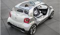 The Fourjoy has no doors, no rear window and an open roof - in fact it's very reminiscent of the Renault Twizy - but unlike the French car, the Smart has room for four people. Like all Smart models however, it's still small with an overall length of less than 3.5 metres and echoes some of the styling of the Smart ForTwo with short overhangs and a bluff front end.