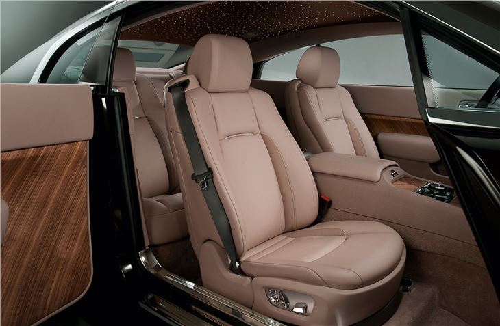 The Wraith's interior will be familiar to Ghost drivers, especially the 'night sky' headlining, which creates an interesting ambiance thank to 1340 LEDs hand-woven into the headlining. There will be new touches though - inspired by the boating industry, such as marine-grade wood-pannelling.