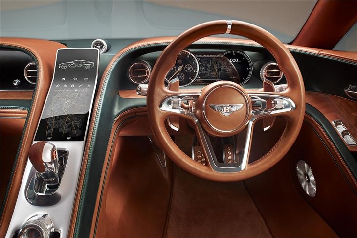 The cabin is finished with traditional Bentley style and materials, so there’s plenty of metal and quilted leather. There is also a 10-inch touchscreen infotainment system and a dashboard that features both traditional analogue locks and modern digital readouts.
