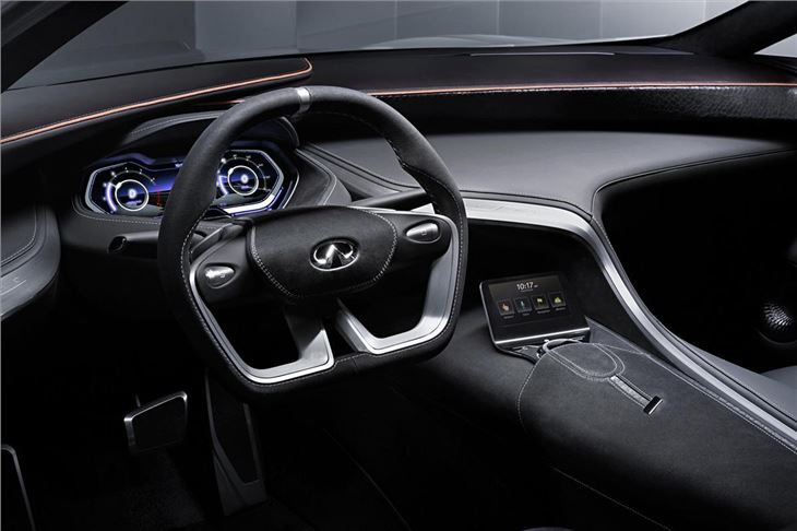 The cabin has four individual seats – the Q80 Inspiration concept is billed as a ‘1+1+1+1’. The production car is likely to get an adaptive suspension system to control body roll while maintaining cabin comfort, while acoustic glass and sound deadening should mean impressive refinement.