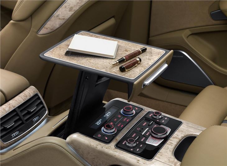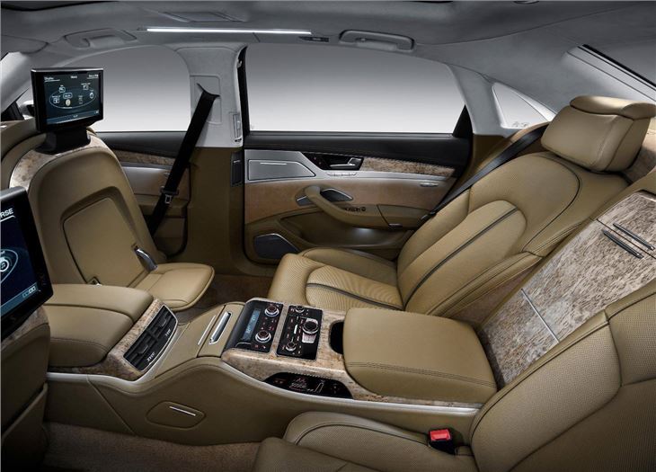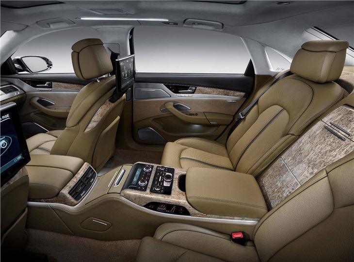 The full extra length of the A8 L benefits rear-seat passengers, who are able to enter even more easily through wider doors which, in the W12 version, feature power assisted closure. Rear passenger comfort is also further improved by standard seat heating, an upgraded climate control system which enables precise temperature modulation in the two rear ‘zones' and electrically operated rear window and side window blinds. In the W12, comfort is taken to even greater extremes by replacing the standard rear seat arrangement with two individual sculpted rear seats which can be heated and ventilated and feature fore/aft adjustable bases and angle adjustable backrests.