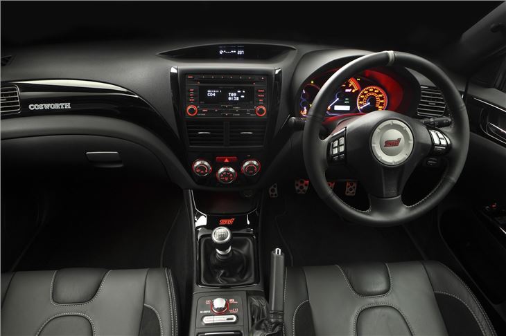 Inside it gets new Recaro front seats, rear seats and a steering wheel which are all trimmed in Cosworth-branded black leather. Also distinguishing the CS400 is a Piano Black centre stack and privacy glass. Standard features carried-over from the WRX STI model include LED tail lamps, front and rear electric windows, a six-disc CD stereo, satellite navigation, Smart-entry and push-button start, plus front, side and curtain airbags.