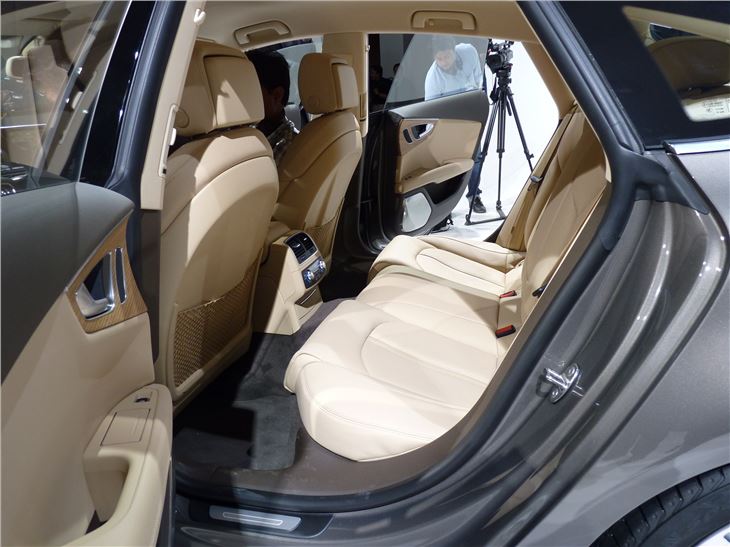 In terms of styling, the A7 is quite a departure. It's unmistakably an Audi, but far more daring that the brand's usual designs, which tend to be rather understated. The newcomer is far more distinctive, particularly at the rear, although the rather unadventurous brown hue of the car used in the unveiling, isn't perhaps the most flattering. But what's instantly apparent is that it has a far sleeker profile than the BMW 5 Series Gran Turismo which seems bloated in comparison.