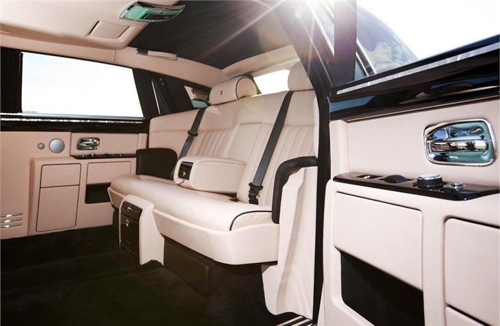 As well as a unique exterior colour and sunrise leather interior, the Phantom Extended Wheelbase features a selection of classic bespoke interior designs. This includes seat piping, mother of pearl centres to white instrument dials, control dials and clock face, Rolls-Royce monogram embroidery in all head restraints and personalized tread plates inscribed with 'Mondial de l'Automobile Paris 2010'.
