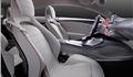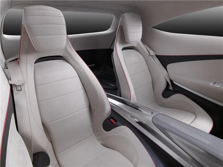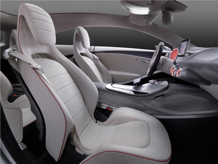 In the cabin the dashboard is inspired by an aircraft wing, with further aviation influences apparent in the ‘jet engine’ air vents and ‘afterburner’ style red instrument clusters. The gear leaver is designed to look like an aircraft throttle control.