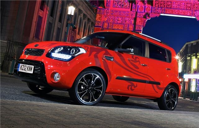 The Soul Inferno gets Tornado Red paintwork complete with 'tattoo-style' dragon graphics, a rear spoiler, silver roof rails and 18-inch Black Petal alloy wheels. The rear windows get privacy glass and there are LED daytime running lights plus black high gloss mirrors and bumper inserts.