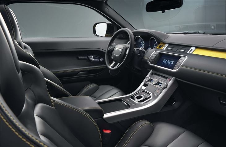 Range Rover has launched a new Black Design pack for the stylish Evoque available initially on a limited edition Sicilian Yellow model that comes with a contrasting black roof. There is also a version that comes in the reverse with Santorini Black paintwork and a yellow roof. There are additional details inside with yellow stitching on the seats and doors plus a yellow strip across the dash.