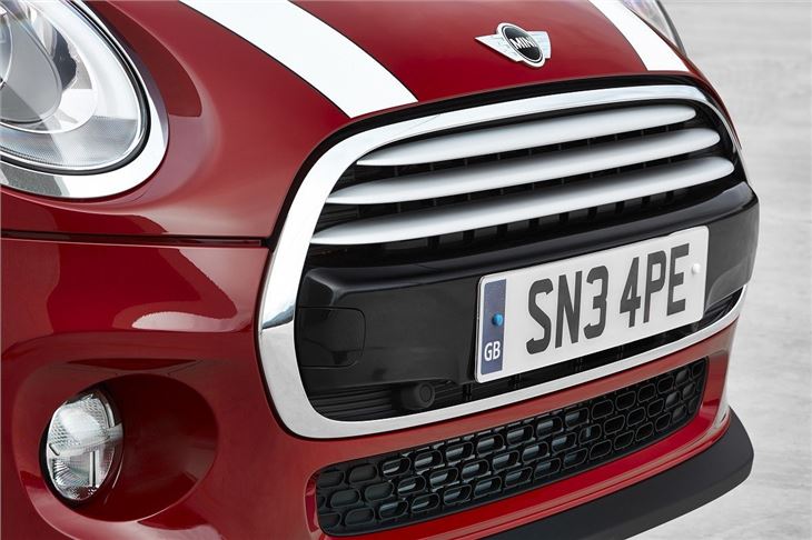 The new car, which was codenamed F56 during development, carries over many of the outgoing car's styling features, such as its floating roof and hexagonal radiator grille (no longer split in two horizontally), but moves on in several key areas. The front overhang has been increased in length, and the windscreen now set a shallower angle, blending in to narrower side windows. At the rear, larger tail lights have grown to cut into the tailgate, Paceman style.