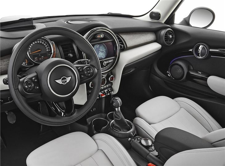 They're all fitted with MINIMALISM technology, that comes with start/stop function and optional GREEN mode. Performance and fuel consumption figures are very impressive - the Cooper D accelerates from 0–62mph in 9.2 seconds, and the maximum speed is 127mph. Combined fuel consumption is 80.7mpg, while CO2 emissions are now down to 92-95g/km, while passing the Euro6 standard. The petrol Cooper's numbers are 7.9 seconds, 130mph, 62.7mpg and 105-107g/km - and the range-topping Cooper S's numbers are 6.8 seconds, 147mph, 49.6mpg and 133-136g/km.