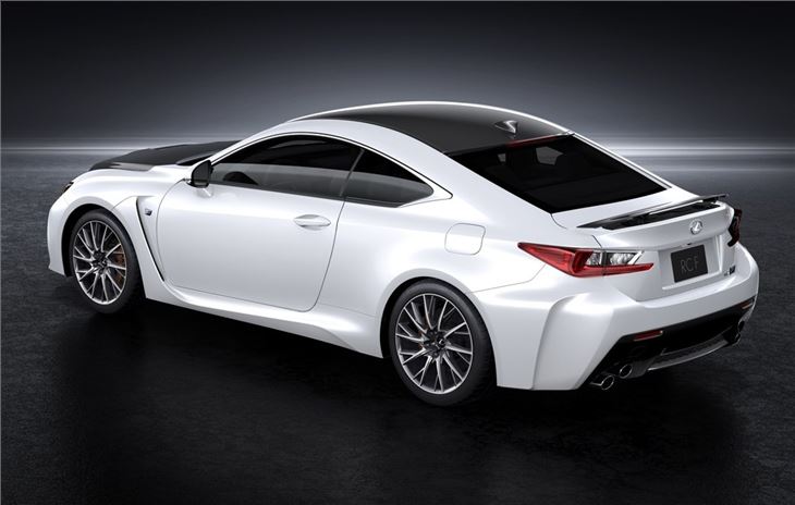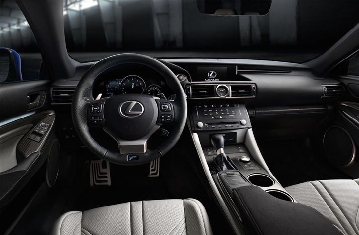 Along with a torque vectoring differential, the RC F comes with an active rear wing. This is built into the boot and creates additional downforce at speeds above 50mph. To make the RC F stand out from the standard RC it comes with a higher bonnet with an air vent, ten-spoke 19-inch alloy wheels and dual twin exhausts. Carbon fibre is used in the roof, bonnet and rear wing to keep weight down.