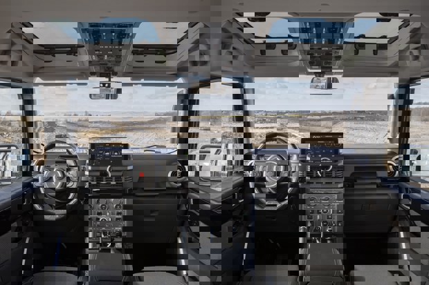 More Defender parallels come when you read the specs. You get permanent four-wheel drive, low and high-range gears, plus locking front, centre and rear differentials. Its tall ride height means it can tackle undulating terrain and steep hills, and you can have a raised air intake for dusty environments.