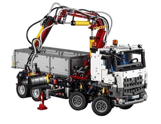 The Arocs model comes with four axle suspension, an outrigger, a new turntable element, pumps, and the new Pneumatics 2.0 system, which offers an easier, more realistic way of connecting cylinders and hoses.