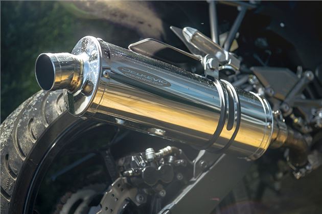 It certainly doesn’t feel cheap though. Construction is really sturdy, with a perfect mirror finish – plus it’s appreciably lighter than the standard silencer, although a pricier carbon fibre option is lighter still. Installation requires basic tools and takes about 15 minutes, so almost anyone can do it at home.