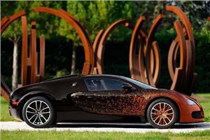 Yet the Venet Veyron was neither bent nor covered in tar footprints, but instead decorated with equations and formulas – many of which were used by Bugatti’s engineers, it’s said. Probably to work out the ratio of Veyron special editions to billionaires in the world. The answer is 6:1.