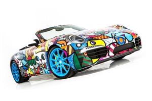 At the same time as Bugatti was unveiling the Bernar Venet Veyron, a Miami car dealership was showing off a unique Porsche 911 Cabriolet it had commissioned Romero Britto to paint.