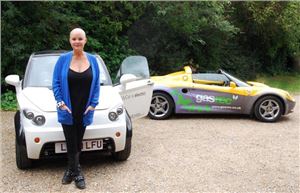 The lovely Gail Porter, off the 90s with her arse on the Houses of Parliament and latterly hosting some show about ghosts in America, helped launch Camden Council’s Green Motor Expo a few years back. Nothing wrong with that, except that in the info that announced the event, Gail said that she had 'made her own green promise to swap her thirsty 4x4 for more eco-friendly transport.' However, the look on Gail’s face in the picture above says, "no way am I swapping my Range Rover for whatever this is."