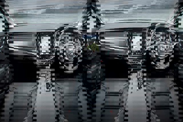 The dashboard is dominated by Volvo’s now familiar nine-inch touchscreen infotainment system. The portrait configuration gives it the feel of a tablet device, similar in style to the system found in Tesla models.