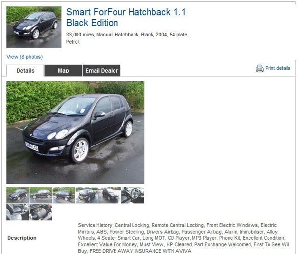 By this time, I was hoping for third time lucky when I found another Smart ForFour - a 1.1-litre Black Edition. I went to view it, did all the checks, managed to get the seller to do the MoT and knock £200 off the £2500 asking price. That will pay for my road tax and a bit of insurance thank you very much. Not bad! Well, Georgie thought so as I had got the same car, with just over 48,000 miles for the same price as she had, except mine is a year younger and has alloy wheels.